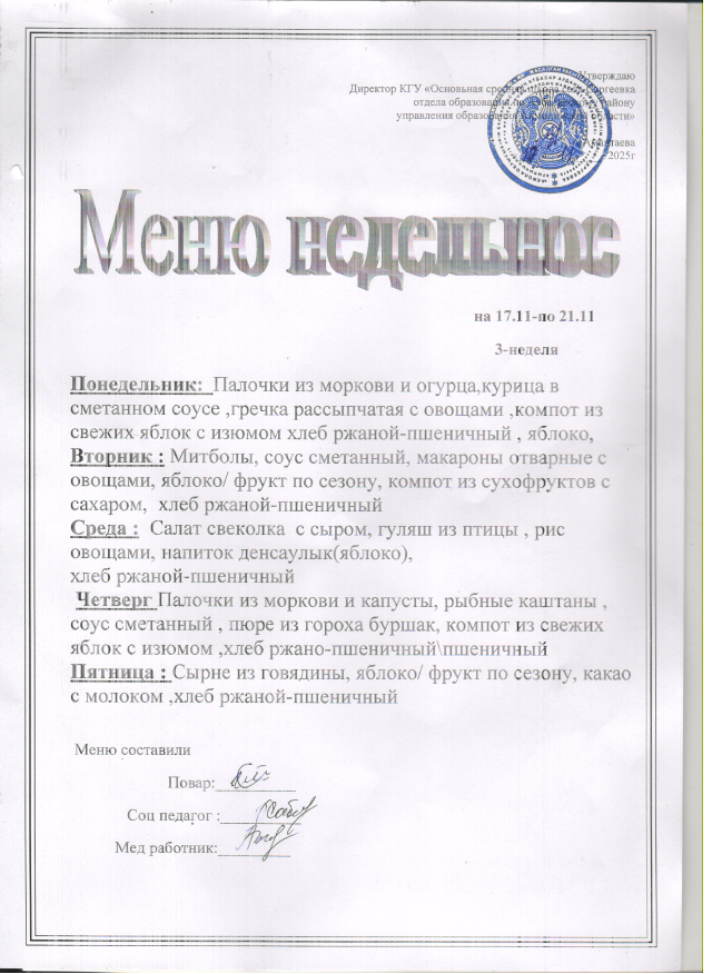 Апталық мәзір