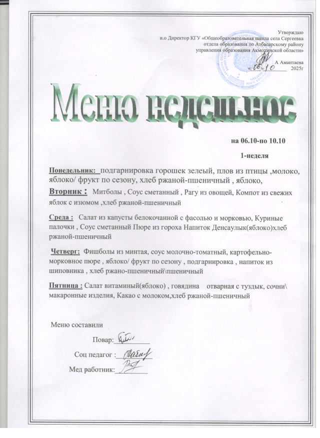 "Ақмола облысы білім басқармасының Атбасар ауданы бойынша білім бөлімі Сергеевка ауылының жалпы орта білім беретін мектебі" коммуналдық  мемлекеттік мекемесі